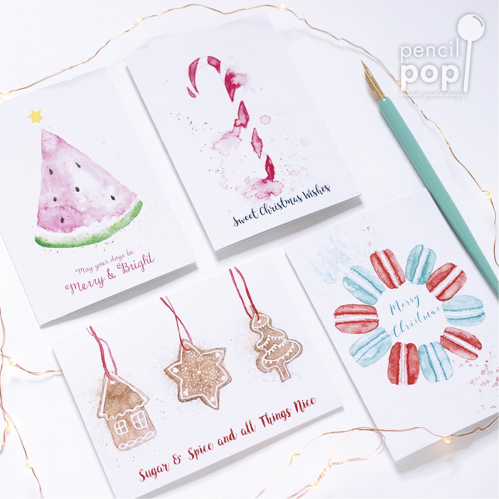 • These sweet little creations were designed and printed in Australia. They feature original hand-painted watercolours by Pencil Pop, which have been lovingly printed on 100% post-consumer recycled card (350gsm EcoStar).
